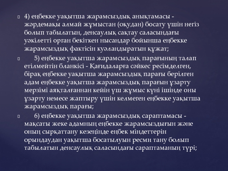 Слайд 44) еңбекке уақытша жарамсыздық анықтамасы - жәрдемақы алмай жұмыстан (оқудан)