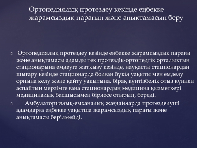 Слайд 19 Ортопедиялық протездеу кезінде еңбекке жарамсыздық парағы және анықтамасы адамды