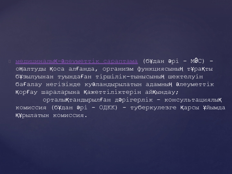 Слайд 5медициналық-әлеуметтік сараптама (бұдан әрі - МӘС) - оңалтуды қоса алғанда, организм