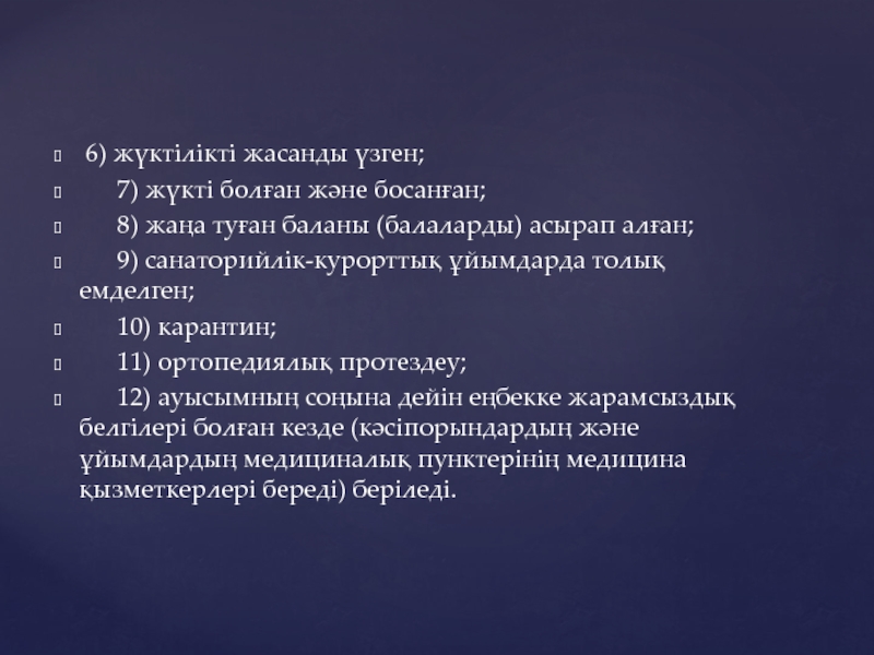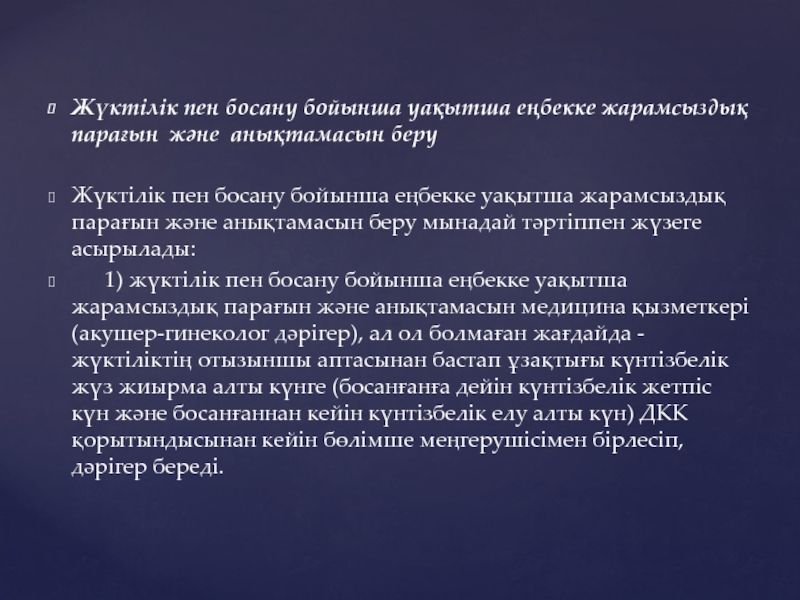 Слайд 16Жүктілік пен босану бойынша уақытша еңбекке жарамсыздық парағын және анықтамасын