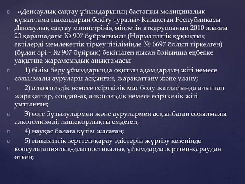 Слайд 7 «Денсаулық сақтау ұйымдарының бастапқы медициналық құжаттама нысандарын бекіту туралы»