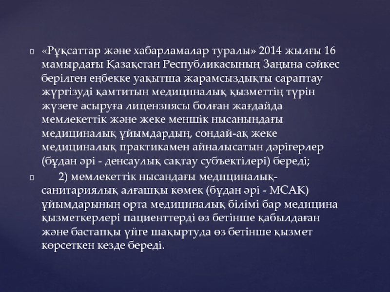 Слайд 2 «халық денсаулығы және денсаулық сақтау жүйесі туралы» қазақстан республикасының