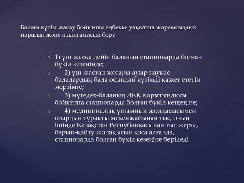 Слайд 171) үш жасқа дейін баланың стационарда болған бүкіл кезеңінде;