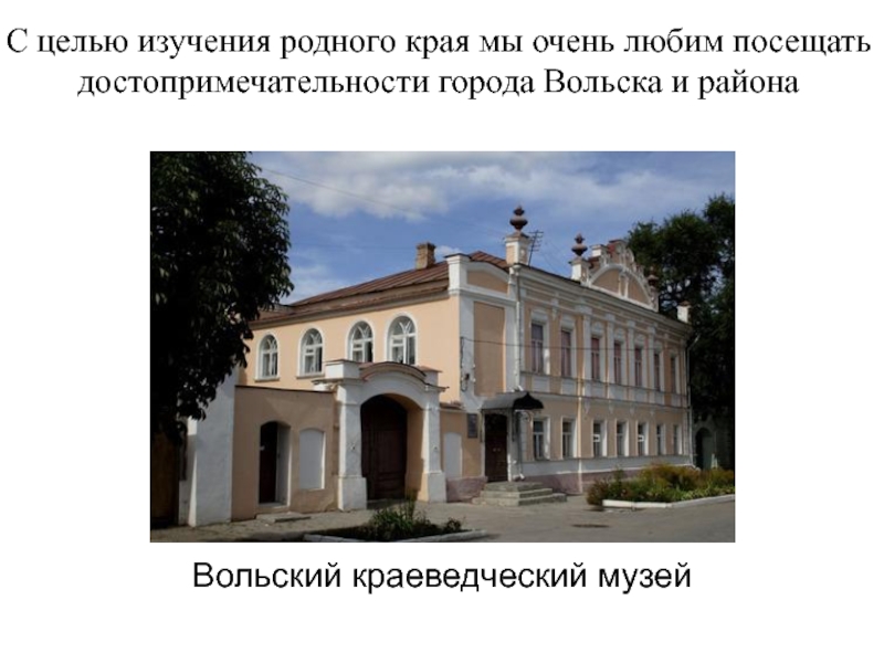 С целью изучения родного края мы очень любим посещать достопримечательности города Вольска и районаВольский краеведческий музей