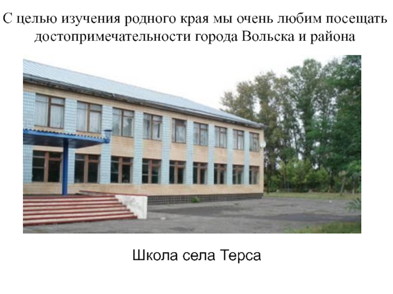 С целью изучения родного края мы очень любим посещать достопримечательности города Вольска и районаШкола села Терса