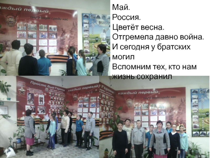 Май. Россия. Цветёт весна. Отгремела давно война. И сегодня у братских могил Вспомним тех, кто нам жизнь