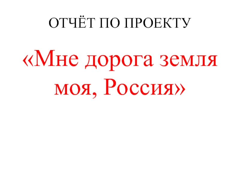 ОТЧЁТ ПО ПРОЕКТУ«Мне дорога земля моя, Россия»