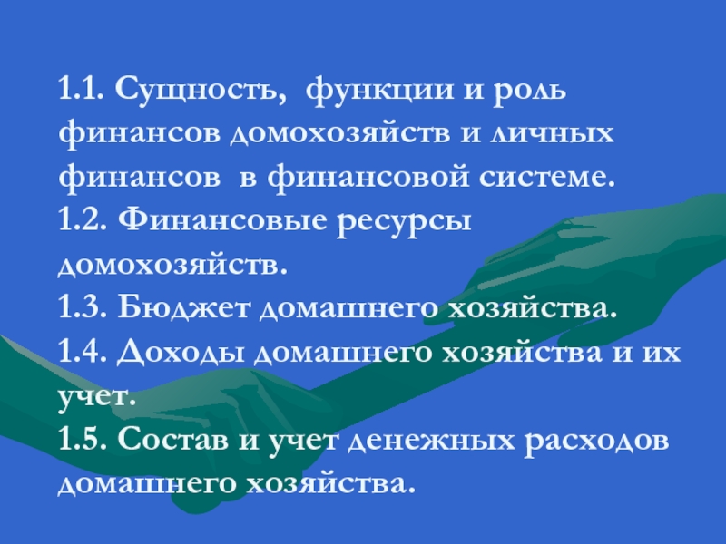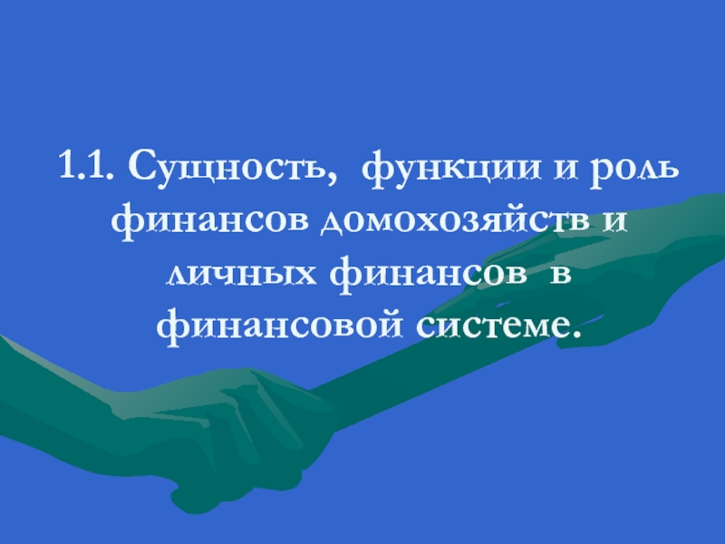 Слайд 71.1. Сущность, функции и роль финансов домохозяйств и личных финансов