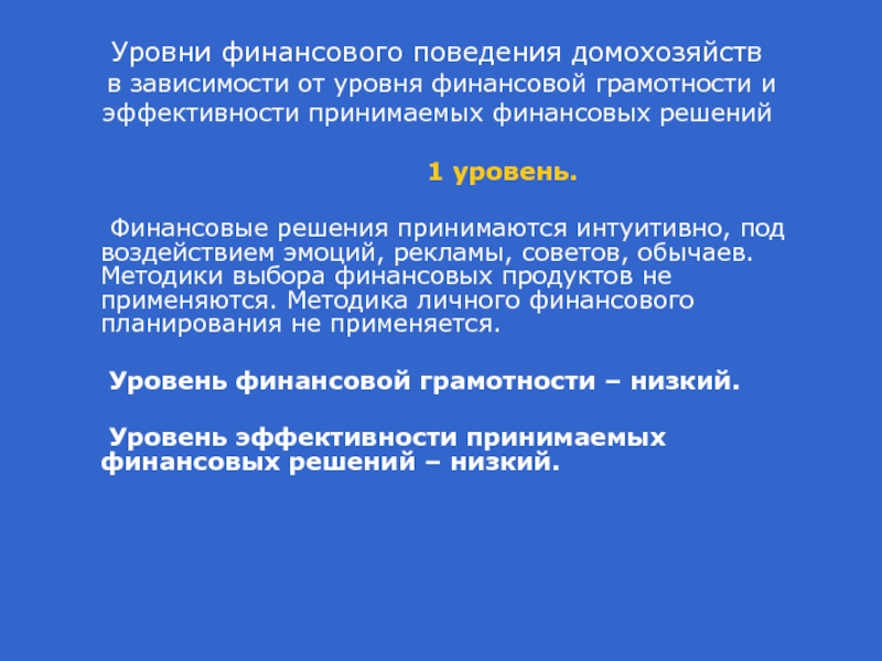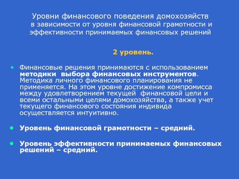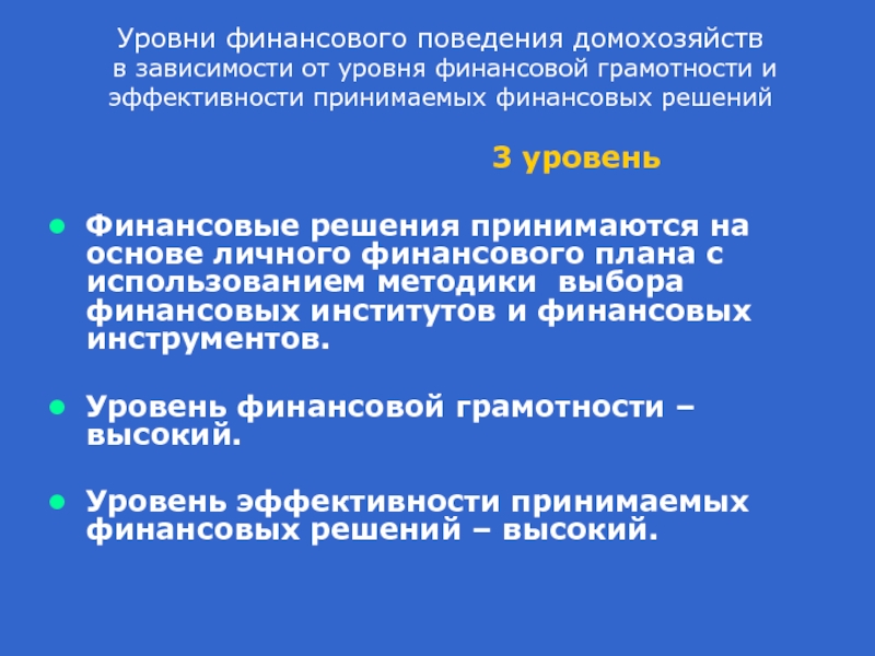 Слайд 63Полный учет текущей финансовой ситуации домохозяйства и финансовых целей, имеющих