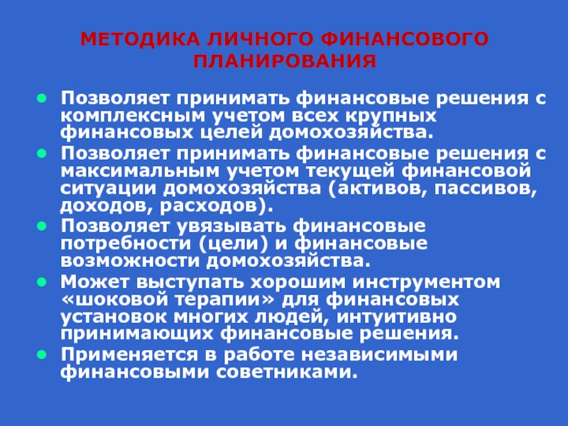 по анализу и управлению финансовыми целями в рамках процесса личного