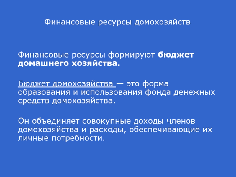 Финансовые ресурсы домохозяйств, их формирование и использование.
