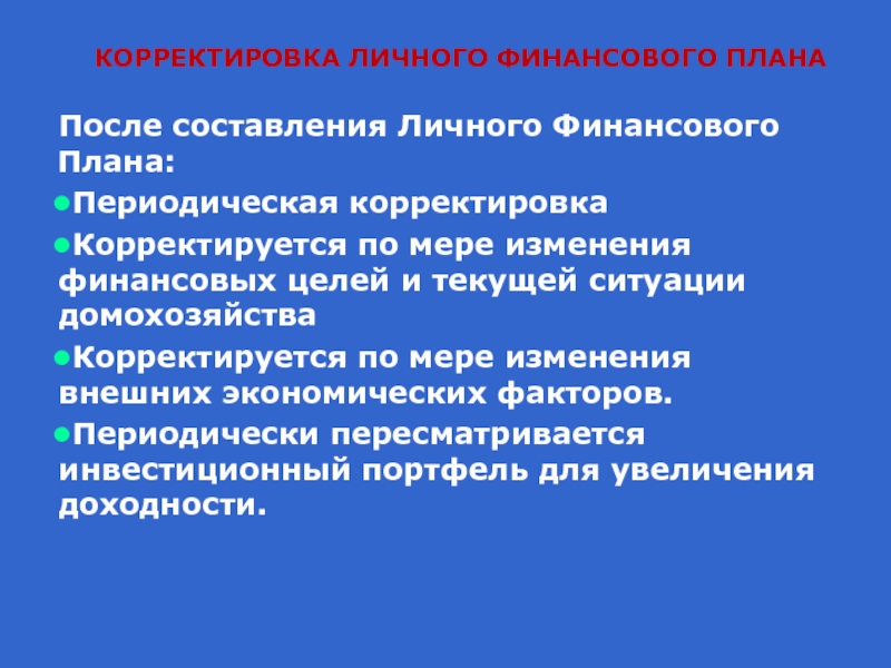 Слайд 62КОРРЕКТИРОВКА ЛИЧНОГО ФИНАНСОВОГО ПЛАНА
