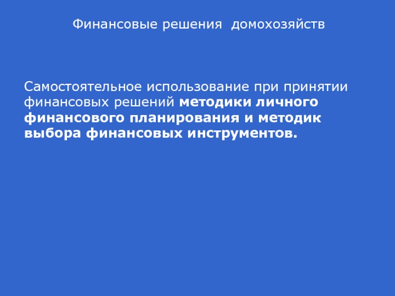 «ФИНАНСЫ ДОМАШНИХ ХОЗЯЙСТВ»
