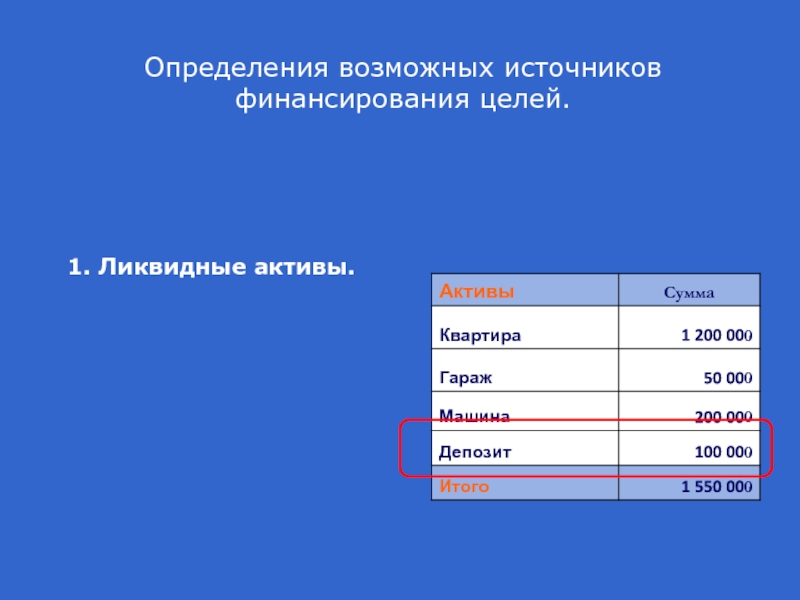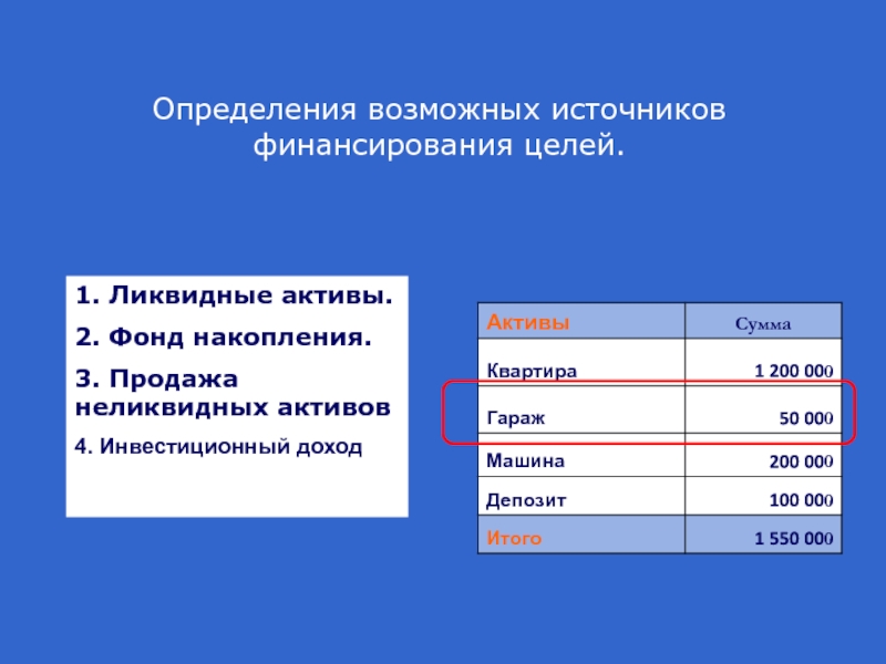 Учет всех возможных источников (ликвидные активы, фонд накопления, денежные