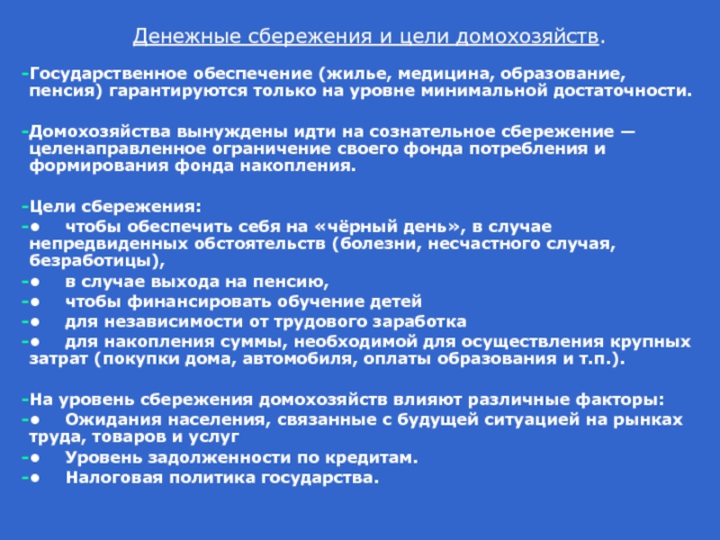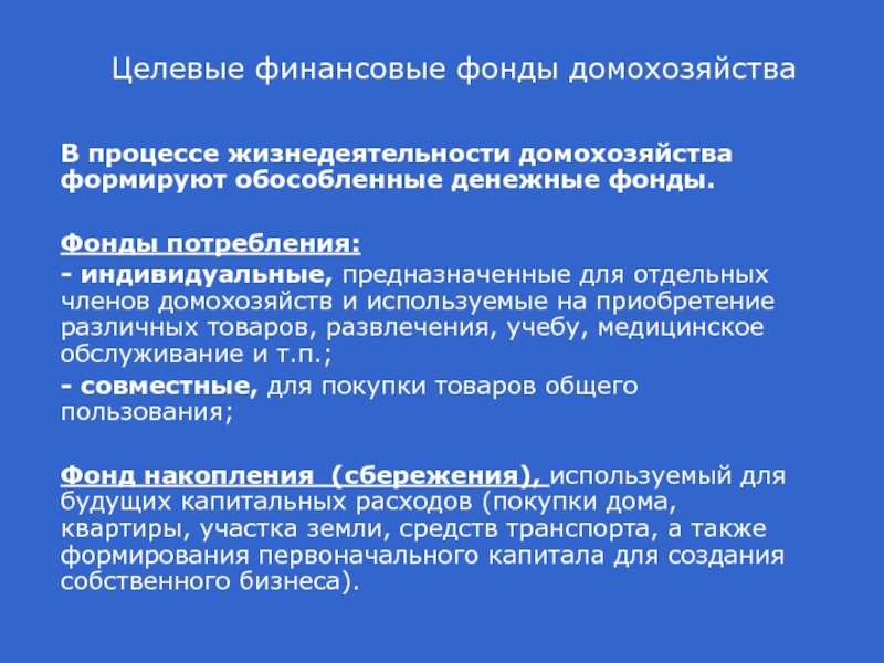 денежных накоплений на приобретение товаров длительного пользования, денежного фонда с целью его дальнейшего инвестирования,