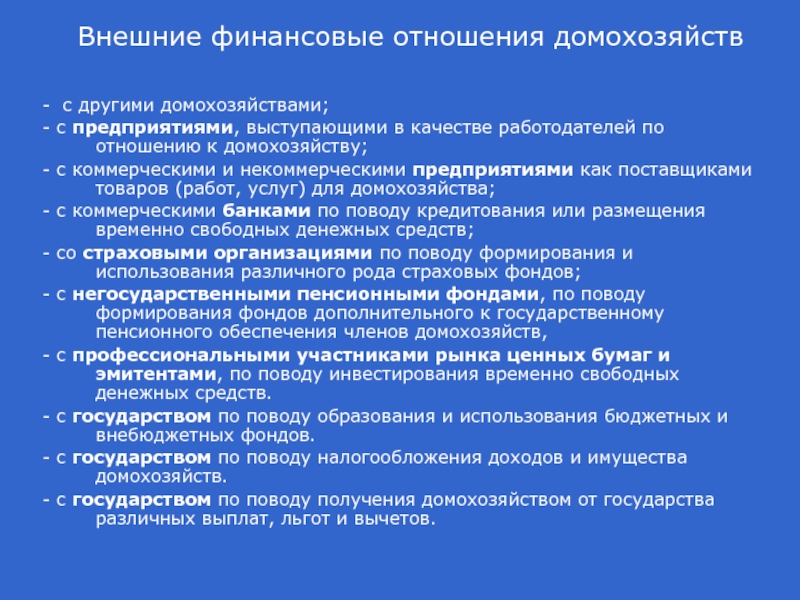 Слайд 13Внутренние финансовые отношения домохозяйств