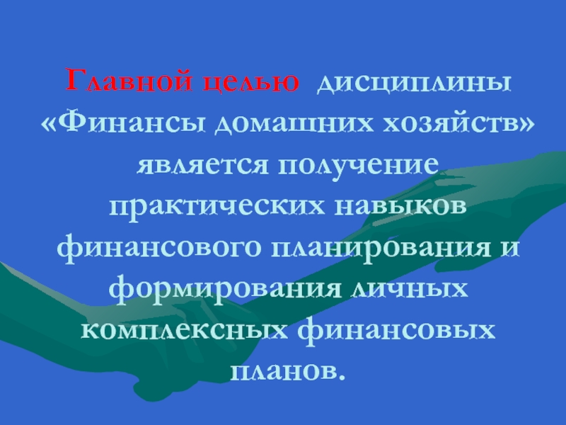 Главной целью дисциплины «Финансы домашних хозяйств» является получение практических навыков