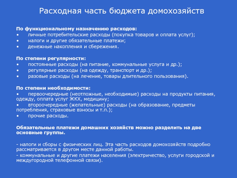 1.5. Состав и учет денежных расходов домашнего хозяйства.