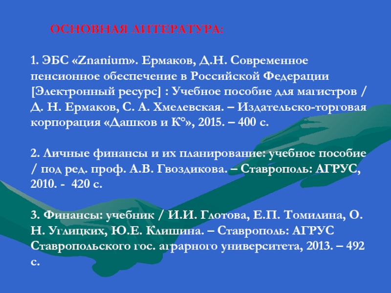 2. Личные финансы и их планирование: учебное пособие / под ред. проф. А.В. Гвоздикова. – Ставрополь: АГРУС, 2010. - 420 с.