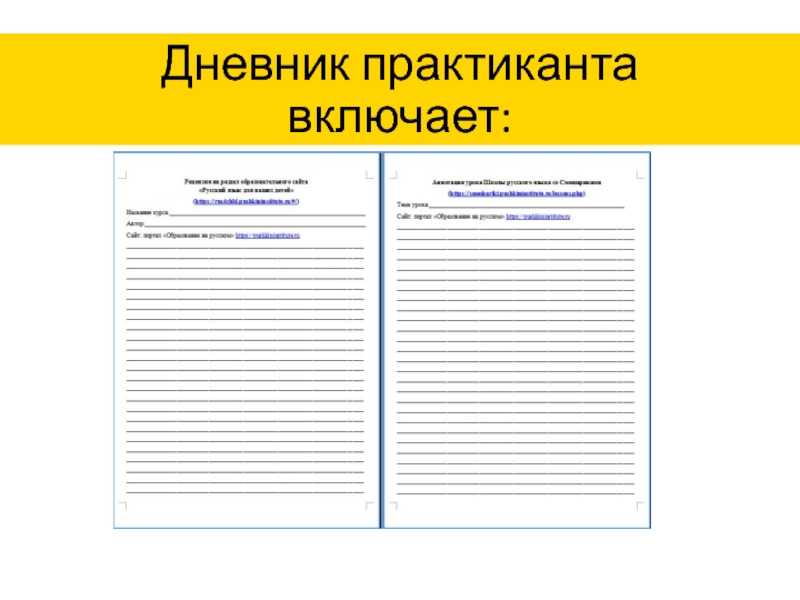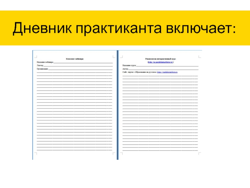 Слайд 10Дневник практиканта включает: