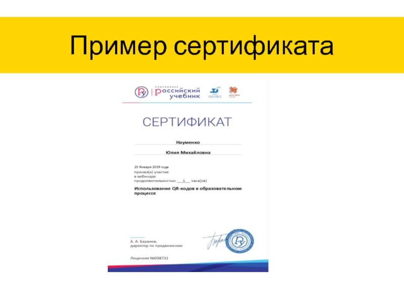 Слайд 13Пример сертификата