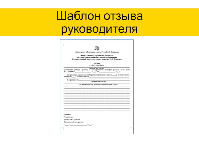 Слайд 14Шаблон отзыва руководителя
