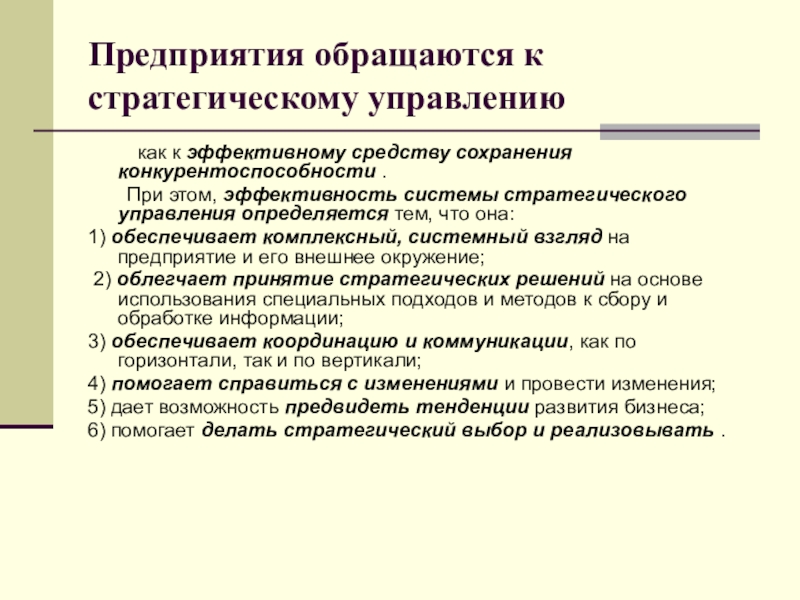 Слайд 17Предприятия обращаются к стратегическому управлению