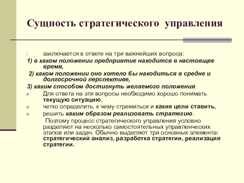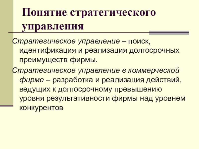 Стратегическое управление – поиск, идентификация и реализация долгосрочных
