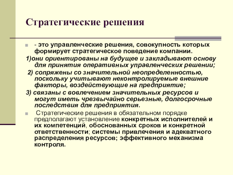 - это управленческие решения, совокупность которых формирует стратегическое поведение