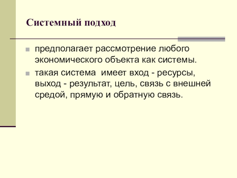 вход - ресурсы, выход - результат, цель, связь с внешней