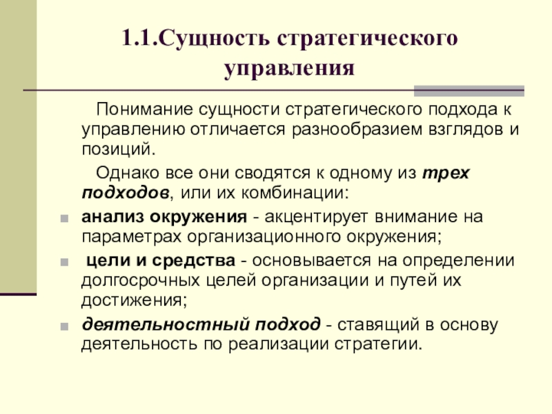 деятельностный подход - ставящий в основу деятельность по реализации стратегии.