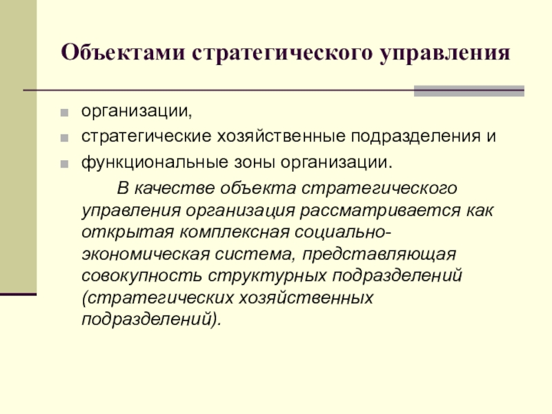 управления организация рассматривается как открытая комплексная социально-экономическая система, представляющая совокупность структурных подразделений (стратегических хозяйственных подразделений).