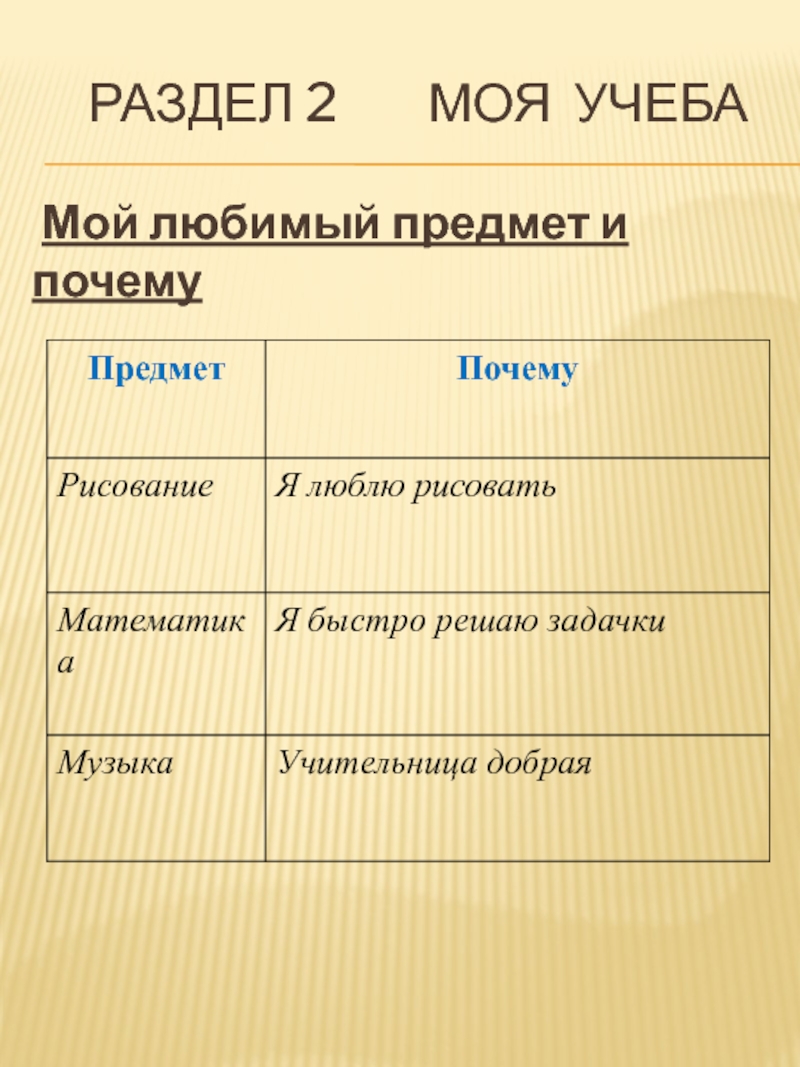 Раздел 2    Моя учеба Мой любимый предмет и почему