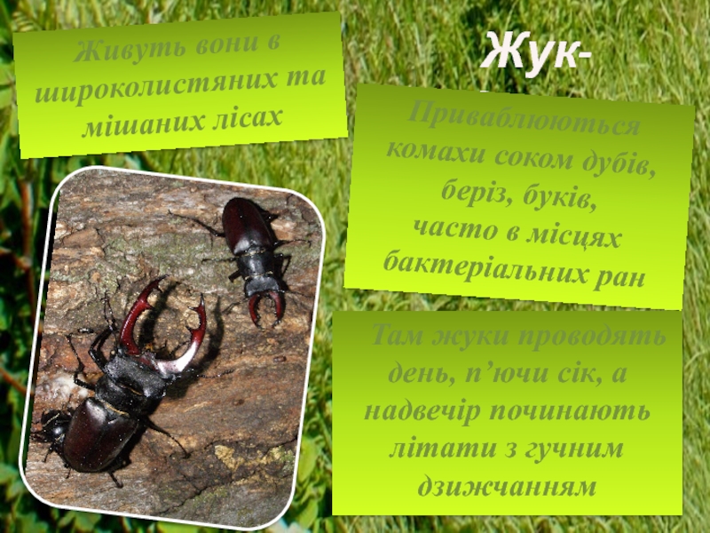 Там жуки проводять день, п’ючи сік, а надвечір починають літати з гучним дзижчанням
