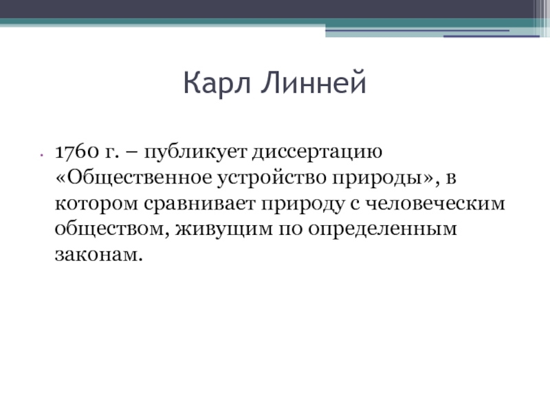 1760 г. – публикует диссертацию «Общественное устройство природы», в
