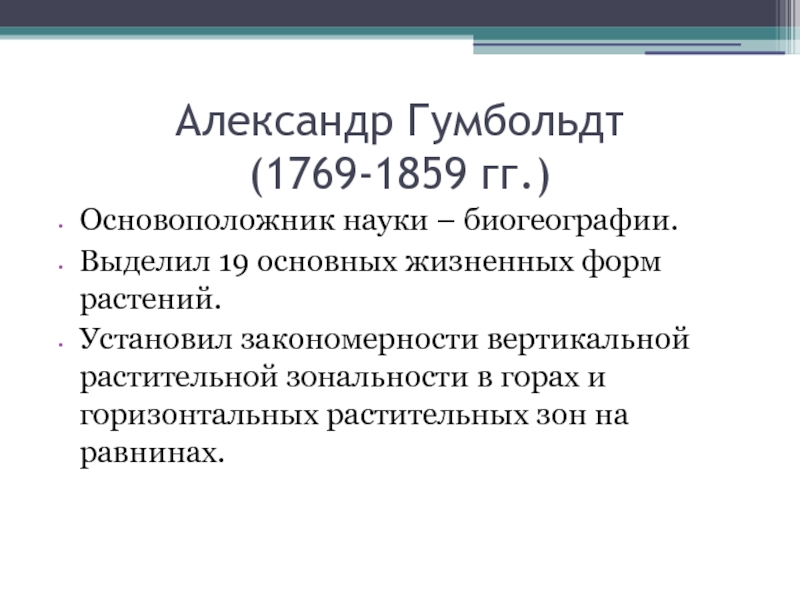 Установил закономерности вертикальной растительной зональности в горах и горизонтальных растительных