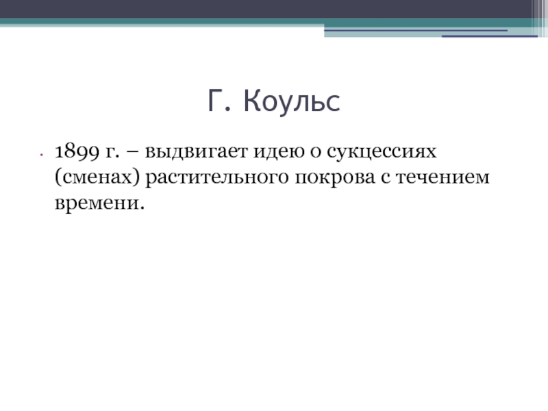 1899 г. – выдвигает идею о сукцессиях (сменах) растительного