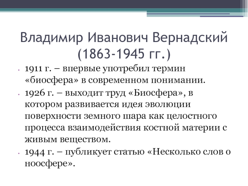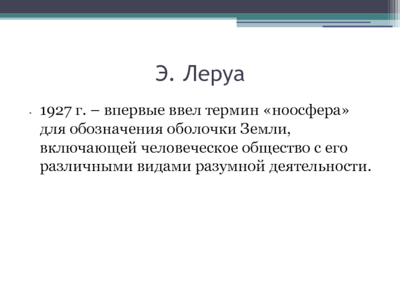 1927 г. – впервые ввел термин «ноосфера» для обозначения