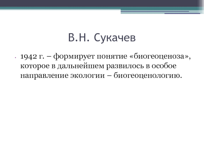 1942 г. – формирует понятие «биогеоценоза», которое в дальнейшем