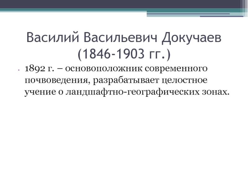 1892 г. – основоположник современного почвоведения, разрабатывает