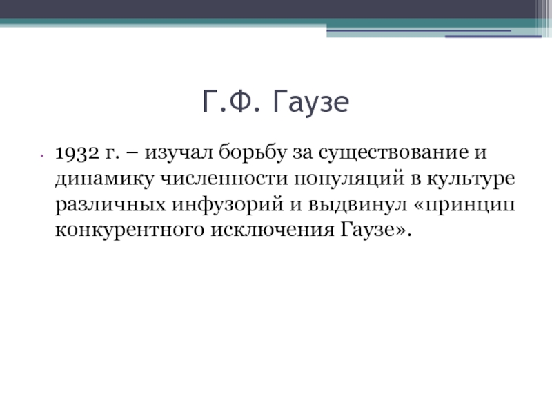 численности популяций в культуре различных инфузорий и выдвинул «принцип конкурентного