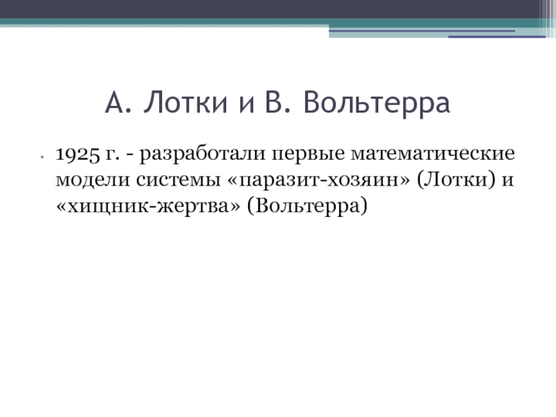 модели системы «паразит-хозяин» (Лотки) и «хищник-жертва» (Вольтерра)