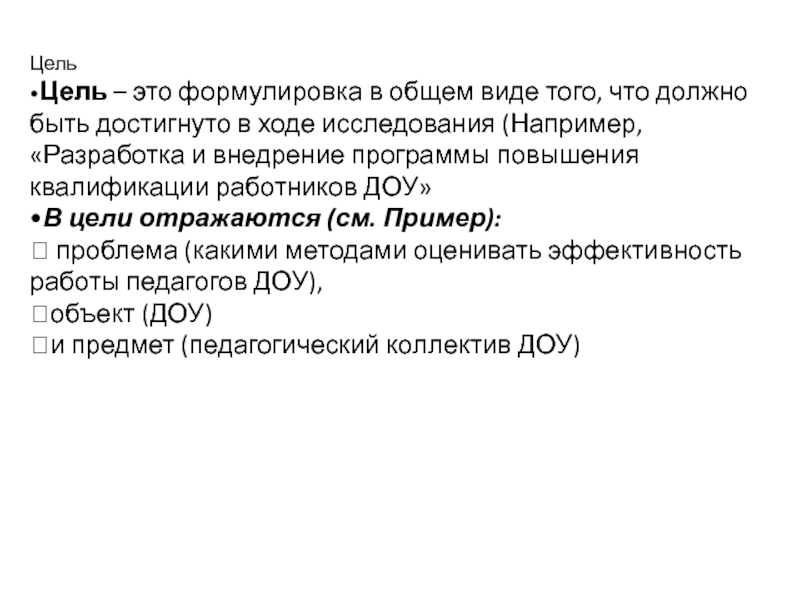 должно быть достигнуто в ходе исследования (Например, «Разработка и внедрение