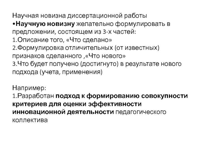 •Диссертация должна содержать новый материал, полученный диссертантом как в процессе обобщения известных результатов (компиляция), так и в получении собственных результатов