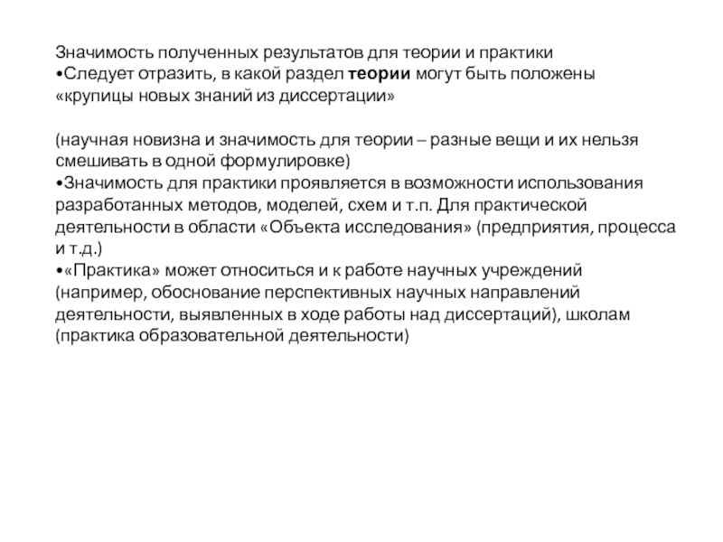 (научная новизна и значимость для теории – разные вещи и их нельзя смешивать в одной формулировке)