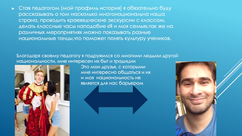 Слайд 9Став педагогом (мой профиль история) я обязательно буду рассказывать о