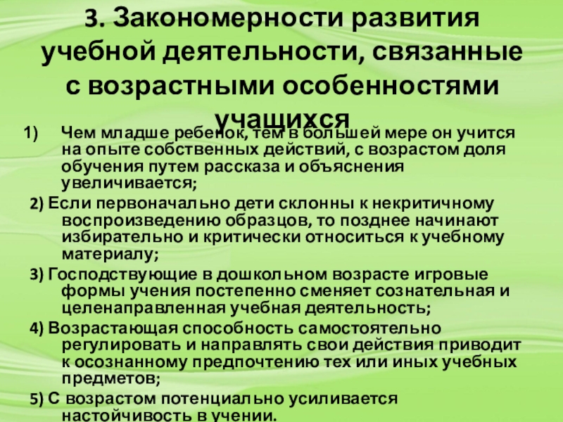 Закономерности развития учебной деятельности, связанные