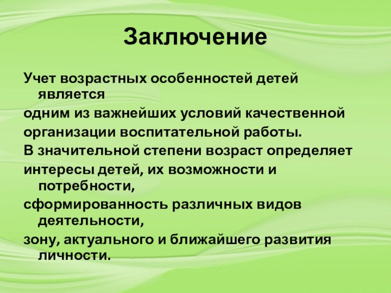 Учет возрастных особенностей детей является