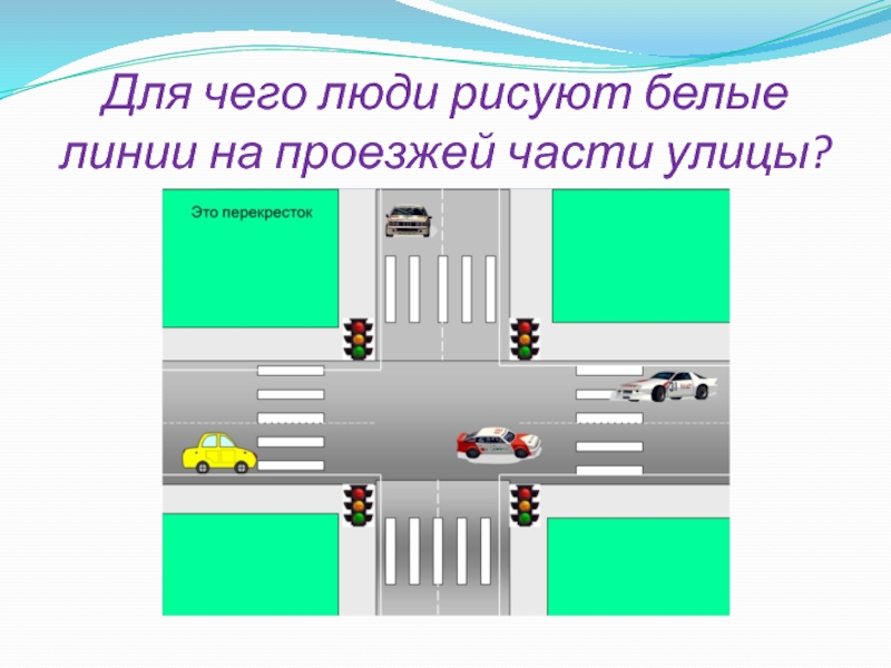 Слайд 6Для чего люди рисуют белые линии на проезжей части улицы?