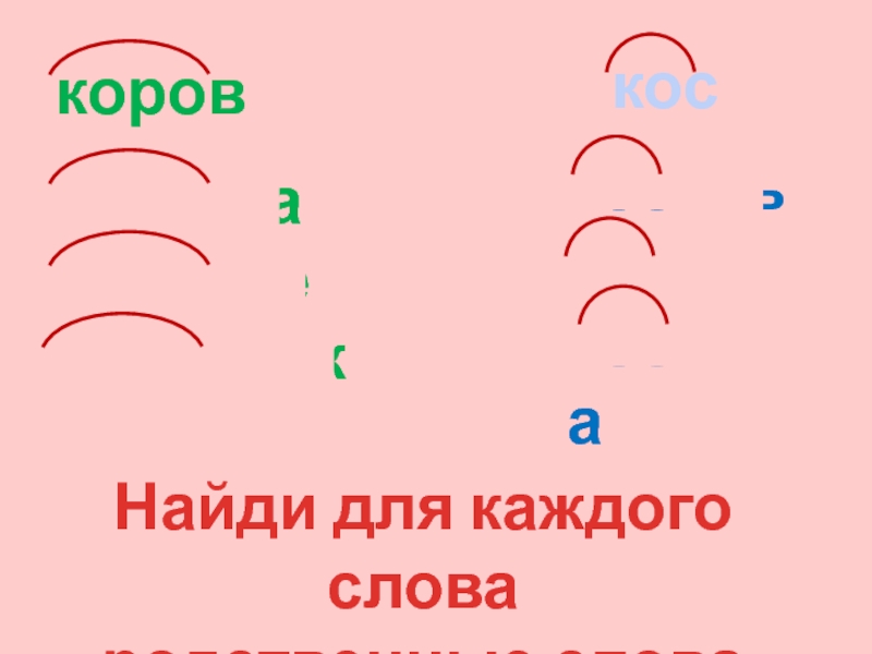 коровакосакоровкакоровьекоровник косить  косарь косилкаНайди для каждого слова родственные слова